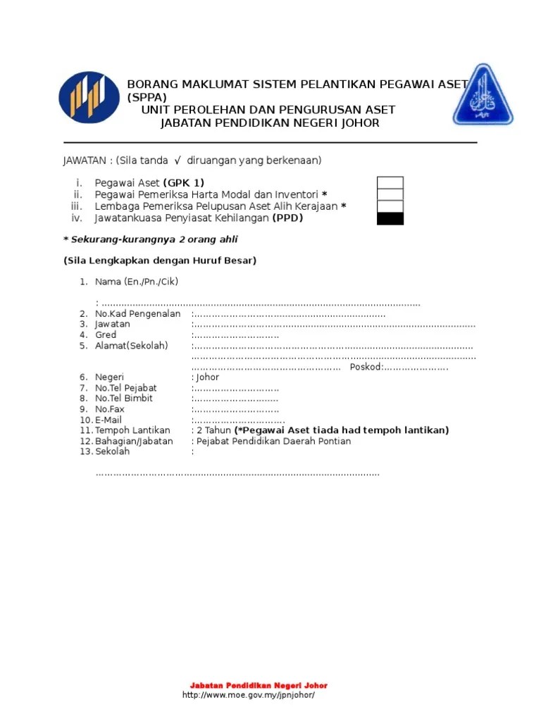 Borang maklumat sistem pelantikan pegawai aset (sppa) unit perolehan dan pengurusan aset jabatan pelajaran johor jawatan. Menguruskan permohonan pelantikan dalam tempoh dua (2) minggu bagi pelantikan seperti berikut: Menyemak/mencetak surat lantikan melalui sistem slpa.moe.gov.my. Borang maklumat sistem pelantikan pegawai aset . Optimalkan pencegahan stunting pemdes sukau datang i tingkatkan peran kpm sinar nusantara news.